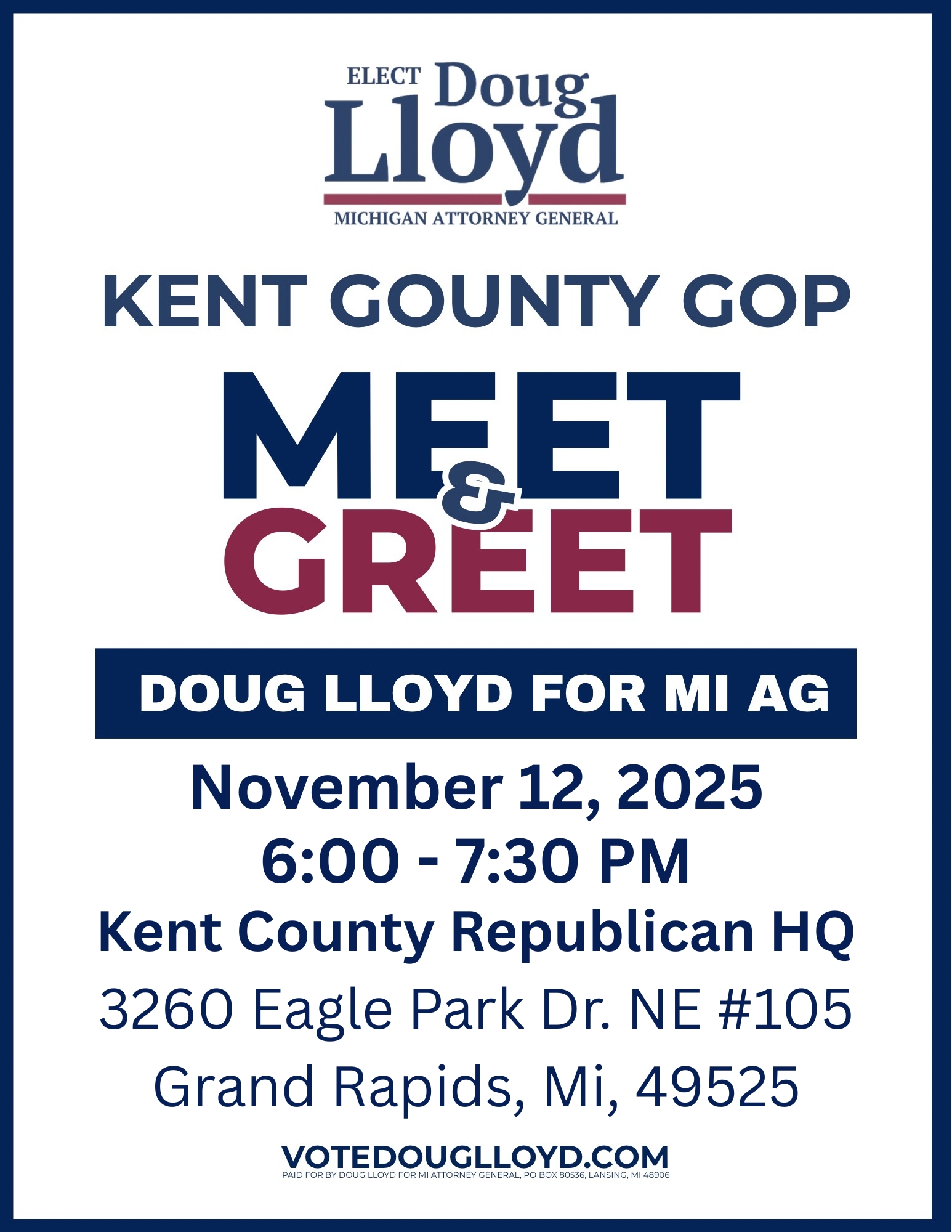 Next week, we welcome Doug Lloyd, candidate for Michigan Attorney General. Join us to hear Doug share his background, his vision for restoring integrity and accountability to Michigan’s justice system, and his commitment to protecting the rights and freedoms of every Michigander.